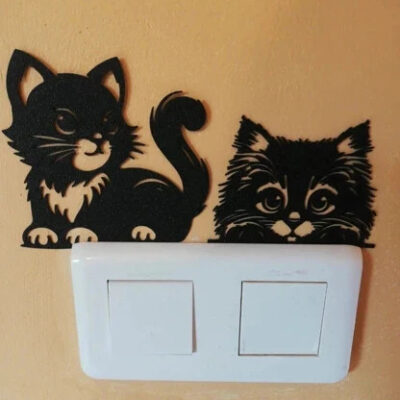 Apportez une touche d’humour et de tendresse à vos murs avec ces deux chats qui grimpent sur l’interrupteur 🐱🐱.