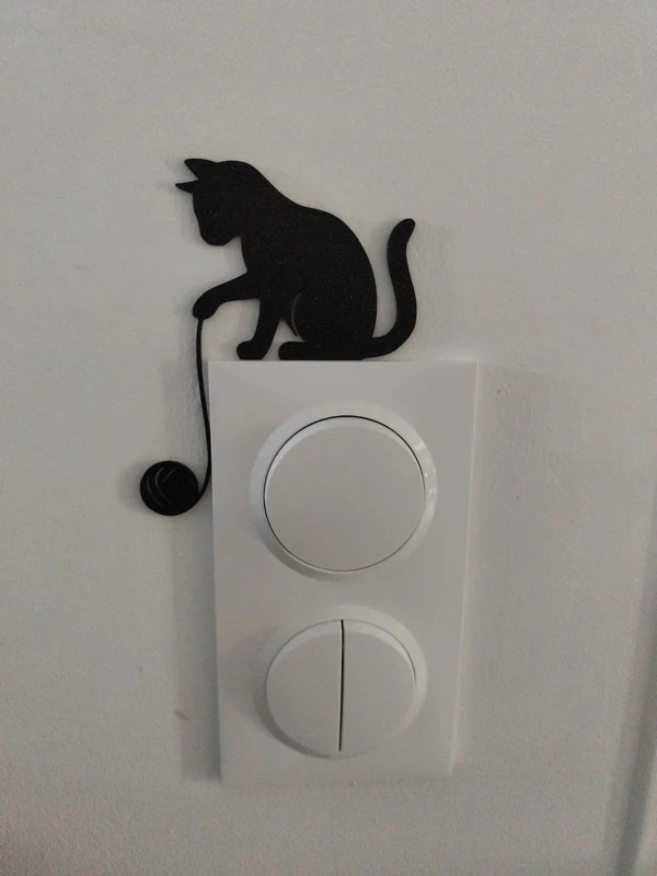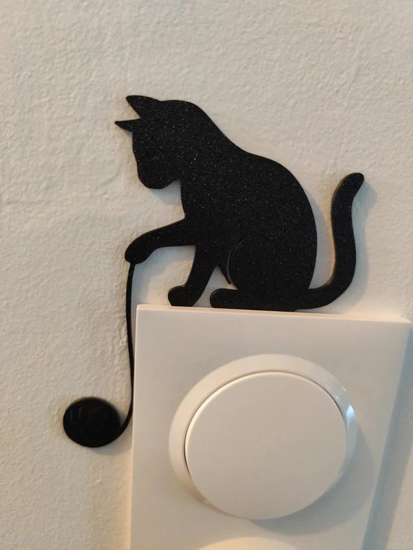 Laissez-vous séduire par cette décoration murale représentant un chat jouant avec une pelote de laine, un détail plein de charme pour vos interrupteurs.