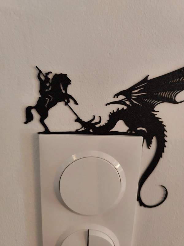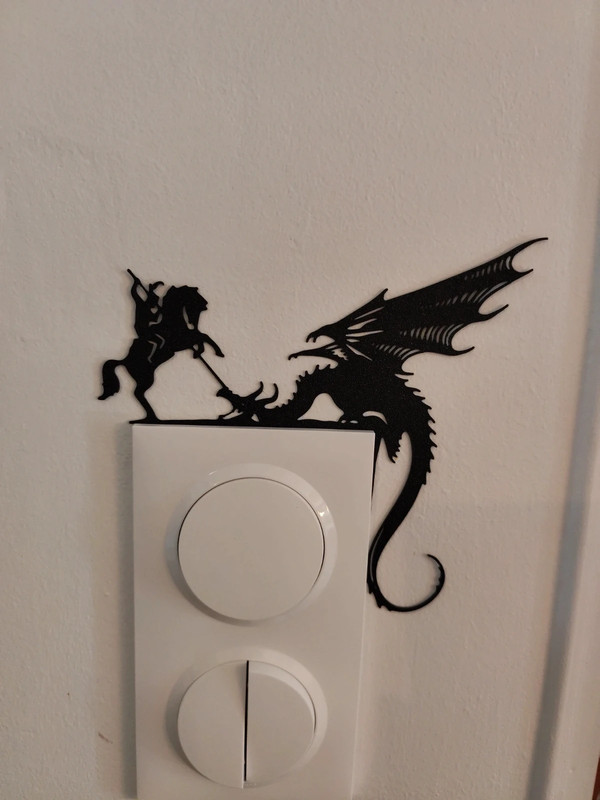 Parfaite pour donner du caractère à votre intérieur, elle représente un chevalier brandissant son épée face à un dragon, symbole de bravoure et de puissance.