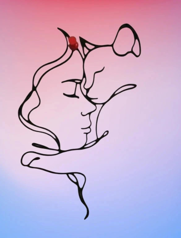 🐱 Modèle : Femme et chat – ligne continue