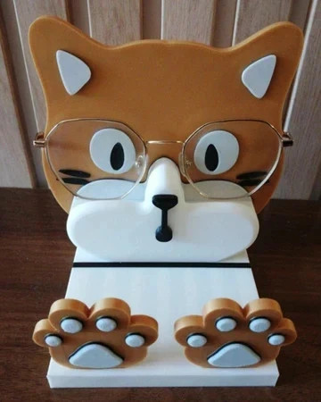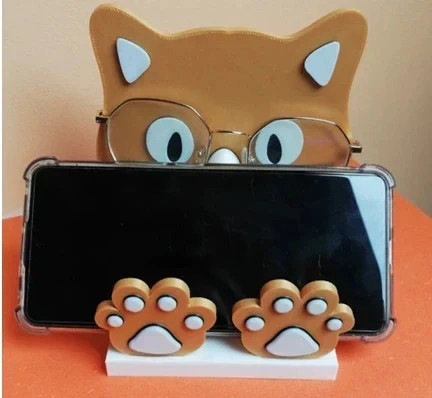 Élégant support 2-en-1 pour lunettes et téléphone, au motif chat raffiné.
