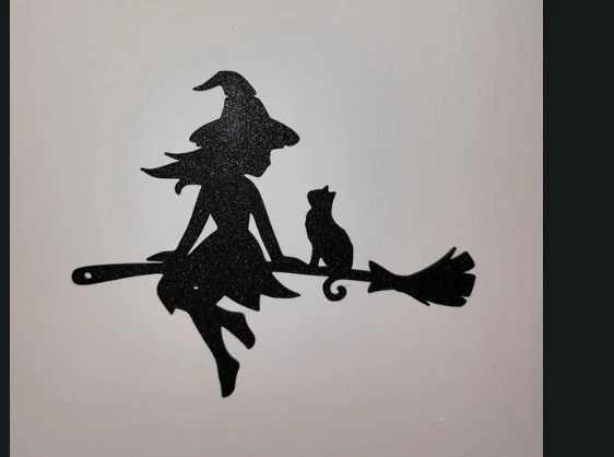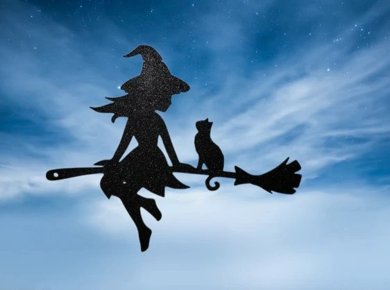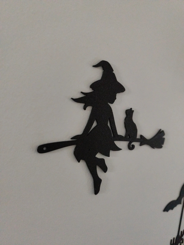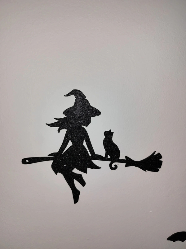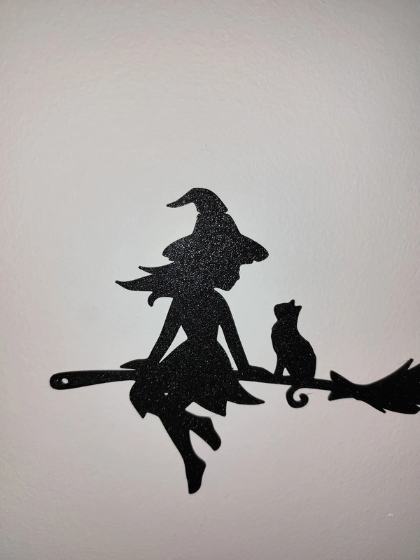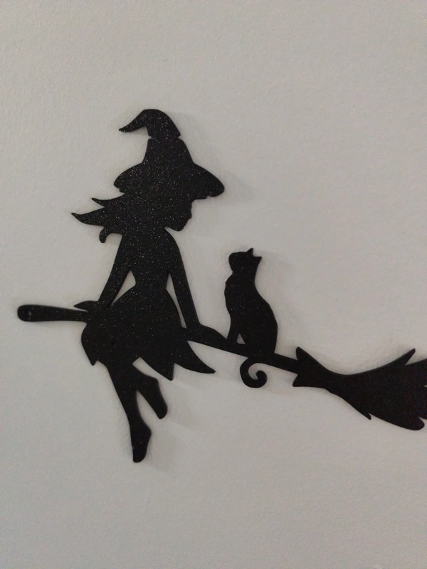 Sorcière et son chat sur un balai dėcoration murale Halloween